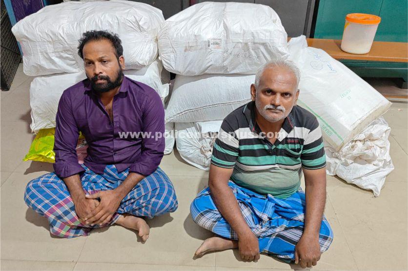 திருவள்ளூர்: திருவள்ளூர் மாவட்டம் மீஞ்சூர் அடுத்த நாலூர் பகுதியில் போலீசார் வாகன சோதனையில் ஈடுபட்டிருந்தனர். அப்போது அவ்வழியே வந்த இருசக்கர வாகனம் ஒன்றை மடக்கி சோதனையிட்டதில் மூட்டையில் தடை செய்யப்பட்ட மாவா, ஜர்தா உள்ளிட்ட குட்கா பொருட்கள் இருந்தது தெரியவந்தது. தொடர் விசாரணையில் அருகே உள்ள வீடு ஒன்றிலிருந்து மாவா பொருட்களை கடையில் விற்பனைக்காக கொண்டு செல்வது தெரிய வந்தது. தொடர்ந்து குறிப்பிட்ட இடத்தில் உள்ள வீட்டில் காவல்துறையினர் சென்று சோதனை மேற்கொண்டதில் மூட்டை, மூட்டையாக தடை செய்யப்பட்ட மாவா, ஜர்தா உள்ளிட்ட குட்கா பொருட்கள் இருந்தது தெரிய வந்தது. இதனை அடுத்து சுமார் 75 கிலோ மாவா உள்ளிட்ட குட்கா பொருட்களை மீஞ்சூர் காவல்துறையினர் பறிமுதல் செய்தனர். தடை செய்யப்பட்ட குட்கா பொருட்களை பதுக்கி வைத்து விற்பனை செய்து வந்த கௌதுல் ஆலம் (50). ராஜேஷ் (42). ஆகிய இருவரை மீஞ்சூர் போலீசார் கைது செய்தனர்.