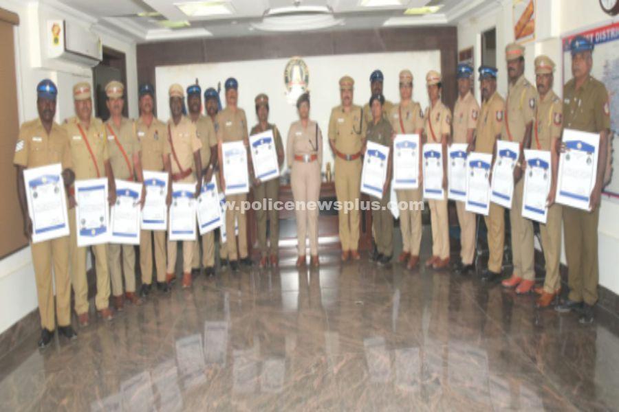 இராணிப்பேட்டை : இராணிப்பேட்டை மாவட்ட காவல் அலுவலகத்தில் மாவட்டத்தில் கடந்த 10 ஆண்டுகளாக சிறப்பாக பணியாற்றிய காவலர்களுக்கு தமிழ்நாடு முதலமைச்சரால் வழங்கப்படும் முதலமைச்சர் காவல் பதக்க சான்றிதழை இராணிப்பேட்டை மாவட்ட காவல் கண்காணிப்பாளர் செல்வி.D.V கிரண் ஷ்ருதி, இ.கா.ப., அவர்கள் சான்றிதழ்களை வழங்கி வாழ்த்துக்களை தெரிவித்தார். இந்நிகழ்ச்சியில் மாவட்ட கூடுதல் காவல் கண்காணிப்பாளர் (தலைமையிடம்) திரு.விசுவேசுவரய்யா உடன் இருந்தார்.