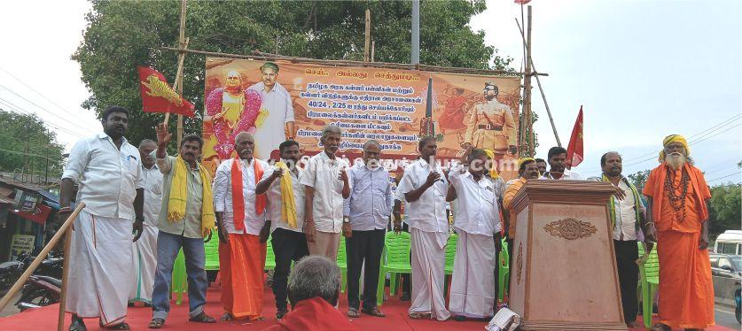 மதுரை: உசிலம்பட்டியில் கள்ளர் பள்ளிகள் முன்னாள் மாணவர்கள் நலச் சங்கம் சார்பில், அரசு கள்ளர் பள்ளிகள் மற்றும் கள்ளர் விடுதிகளுக்கு எதிரான அரசானையை ரத்து செய்யக்கோரி கண்டன ஆர்ப்பாட்டம் நடைபெற்றது. தமிழக அரசு கள்ளர் பள்ளிகள் மற்றும் கள்ளர் விடுதிகளை சமூக நீதி பள்ளி மற்றும் விடுதிகள் என பெயர் மாற்றம் செய்து வருகின்ற சூழலில் தேனி,திண்டுக்கல், மதுரை உள்ளிட்ட பல்வேறு இடங்களில் எதிர்ப்பு தெரிவித்து வருகின்ற சூழலில் ,இன்று மதுரை மாவட்டம் உசிலம்பட்டி முருகன் கோவில் முன்பு கள்ளர் பள்ளிகள் முன்னாள் மாணவர்கள் நலச் சங்கம் சார்பில் தமிழக அரசு கள்ளர் பள்ளிகள் மற்றும் கள்ளர் விடுதிகளுக்கு எதிரான அரசானைகள் (40/24,2/25) ஐ ரத்து செய்யக் கோரியும், பிரமலைக்கள்ளரிடம் பறிக்கப்பட்டு உரிமைகளை மீட்கவும் பிரமலைக் கள்ளர்களின் வரலாற்றையும் இன அழிப்பையும் பாதுகாக்க வலியுறுத்தி கண்டன ஆர்ப்பாட்டம் மற்றும் பொதுக்கூட்டம் நடைபெற்றது .இதில் நூற்றுக்கும் மேற்பட்டோர் கலந்து கொண்டு கள்ளர் பள்ளிகள் மற்றும் கள்ளர் விடுதிகளை சமூக நீதி பள்ளிகள் மற்றும் விடுதிகள் என பெயர் மாற்றம் செய்யும் தமிழக அரசின் நடவடிக்கைகளை கைவிட கோரி கண்டன ஆர்ப்பாட்டத்தில் ஈடுபட்டனர்.