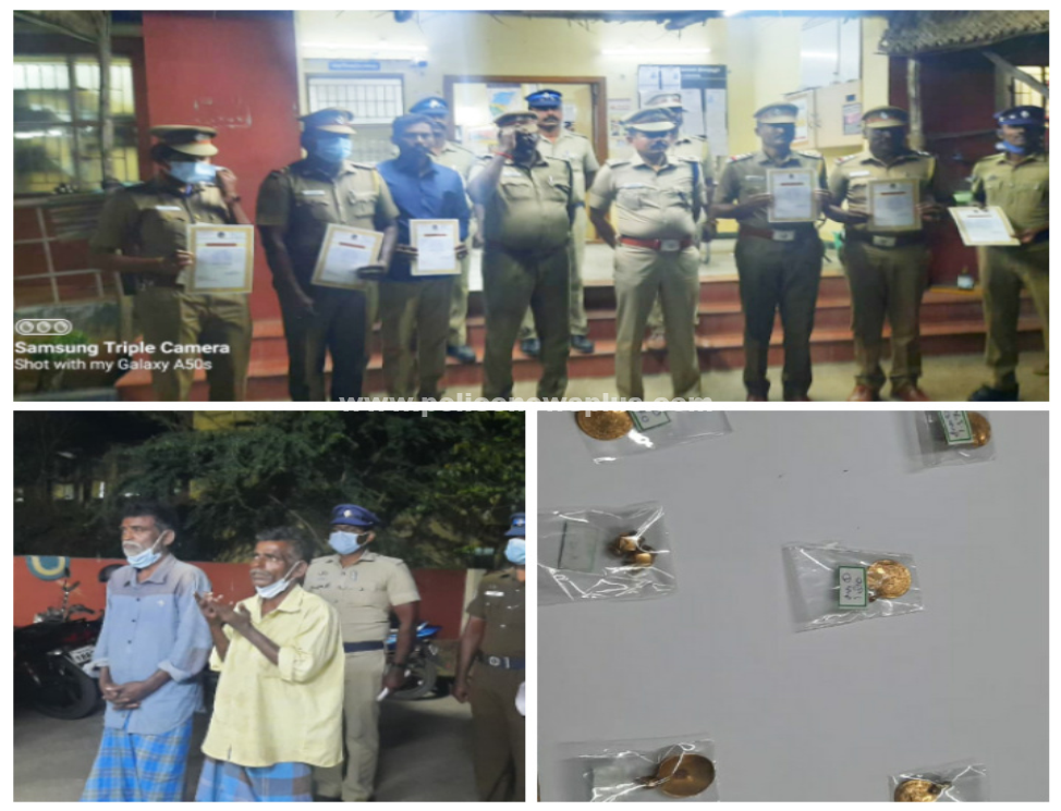 குற்றம் நடந்த 3 மணி நேரத்தில் குற்றவாளிகளை கைது செய்த போலீசாரை எஸ்.பி திரு.சீனிவாசன் பாராட்டி சான்றிதழ் வழங்கினார்.