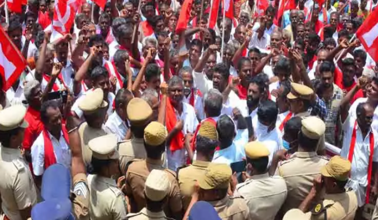 இந்திய கம்யூனிஸ்டு கட்சியினர் ெரயில் நிலையத்திற்கு ஊர்வலமாக சென்றனர். இதனை மாநில குழு உறுப்பினர் முன்னாள் எம்.எல்.ஏ. ராமசாமி தொடங்கி வைத்தார். ரயில் மறியல் போராட்டத்திற்கு ஊர்வலமாக வந்தவர்களை ரயில் நிலையத்திற்கு முன்பு போலீசார் தடுத்து நிறுத்தினர். போராட்டத்திற்கு அனுமதி இல்லை என கூறிய போலீசார் மறியலுக்கு வந்த 160 பெண்கள் உட்பட 550 பேரை கைது செய்தனர், கைது செய்யப்பட்டவர்கள் தனியார் திருமண மண்டபங்களில் தங்க வைக்கப்பட்டுள்ளனர். போராட்டத்தில் நகர, ஒன்றிய கட்சி நிர்வாகிகள் கலந்து கொண்டனர்.