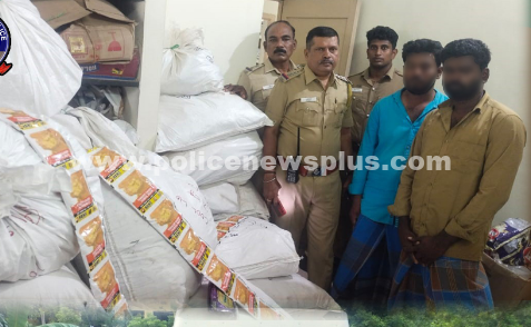 திருச்சி : திருச்சி மாநகரில், (30.08.22),-தேதி திருச்சி மாநகரம் உறையூர் காவல்நிலைய எல்லையில் இளைய தலைமுறையினரை சீரழிக்கும் வகையில் தடை செய்யப்பட்ட பொருட்களான ஹான்ஸ், சைனி, விமல், கணேஷ், கூல்லிப், RMD பவுடர் போன்ற குட்கா பொருட்களை விற்பனை செய்வதாக காவல் ஆய்வாளருக்கு கிடைத்த ரகசிய தகவலின்பேரில் காமட்சியம்மன் கோயில் பகுதியில் ஒருவருக்கு சொந்தமான இடத்தை சோதனை செய்தபோது அங்கு சந்தேகம்படும்படியாக நின்றுக்கொண்டிருந்த உறையூர், காவல்கார தெருவை சேர்ந்த கோபி மற்றும் தென்னூர் சின்னசாமி நகரை சேர்ந்த செந்தில் ஆகியோரை பிடித்து விசாரணை செய்தபோது அவர்களிடமிருந்து ரூ.7,00,000/- இலட்சம் மதிப்புள்ள சுமார் 483 கிலோ 600 கிராம் பறிமுதல் செய்தனர்.