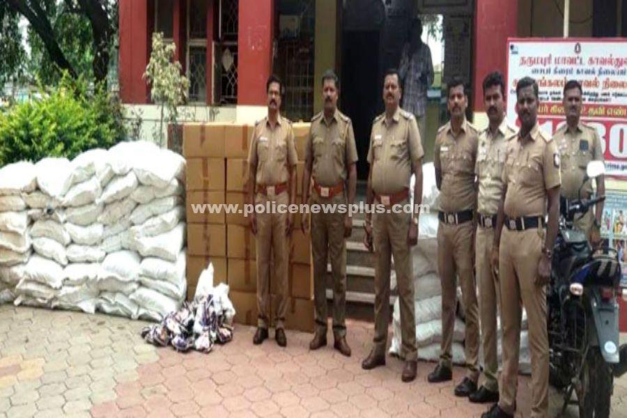 தருமபுரி : தருமபுரி மாவட்டம், காரிமங்கலம் தேசிய நெடுஞ்சாலை வழியாக சேலம், கோவை, கேரளா உள்ளிட்ட பகுதிகளுக்கு குட்கா பொருள்கள் கடத்தப்படுவதாக காரியமங்கலம் போலீசாருக்கு ரகசிய தகவல் கிடைத்தது. அதன் பேரில் காவல் ஆய்வாளர் திரு. வெங்கடராமன் உதவி ஆய்வாளர் திரு. ஜவகர், மற்றும் போலீசார் தலைமையில் பல்வேறு இடங்களில் நள்ளிரவு தீவிர வாகன சோதனையில் ஈடுபட்டனர். காரிமங்கலம் அருகே தேசிய நெடுஞ்சாலையில் நின்று கொண்டிருந்த லாரியை சந்தேகத்தின் பேரில் போலீசார் சோதனை செய்தனர். சோதனையின் போது டிஷ்யூ பேப்பர் மூட்டையுடன் சேர்த்து மறைத்து வைத்திருந்த தடை செய்யப்பட்ட ரூ.10.25 லட்சம் மதிப்பிலான சுமார் 1500 கிலோ குட்கா பொருட்கள் மற்றும் கண்டெய்னர் லாரியை பறிமுதல் செய்தனர்.