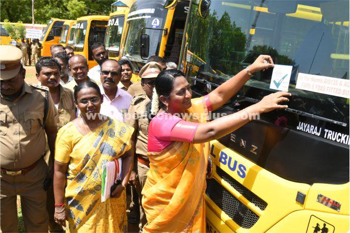 மதுரை: மதுரை காவல் ஆயுதப்படை மைதானத்தில் கோடை விடுமுறை முடிந்து பள்ளிகள் மீண்டும் திறக்கப்படவுள்ள நிலையில் மாணவ மாணவியர்களை ஏற்றிச் செல்லும் பள்ளி வாகனங்களின் நிலை குறித்த வருடாந்திர ஆய்வுப் பணி மாவட்ட ஆட்சித்தலைவர் மா.சௌ.சங்கீதா, தலைமையில் நடைபெற்றது. உடன், வட்டார போக்குவரத்து அலுவலர் உட்பட பலர் உள்ளனர்.