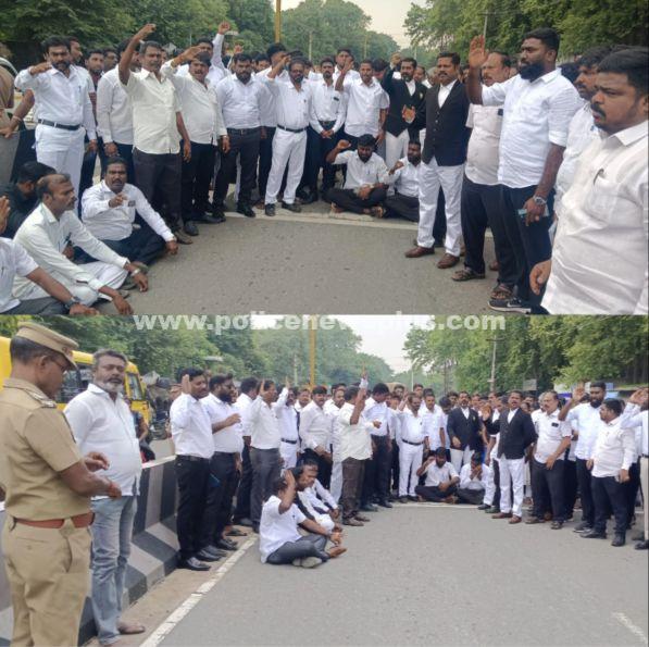 செங்கல்பட்டு : செங்கல்பட்டு மாவட்டம் செங்கல்பட்டு வழக்கறிஞர்கள் சார்பாக ஓசூர் நீதிமன்ற வளாகத்தில் வழக்கறிஞர் கண்ணன் மீதான கொலைவெறி தாக்குதலை கண்டித்தும், உடனடியாக வழக்கறிஞர் பாதுகாப்பு சட்ட மசோதாவை நிறைவேற்ற கோரியும் செங்கல்பட்டு நீதிமன்றம் முன்பாக கண்டன ஆர்ப்பாட்டம் நடைபெற்றது. இதில் 200க்கும் மேற்பட்ட வழக்கறிஞர்கள் கலந்துகொண்டு கோஷங்கள் எழுப்பினர்கள்.