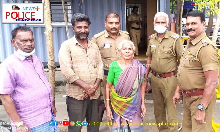 அந்த வழியாக வழி தெரியாமல் வந்த 86 வயதான திருமதி.சுப்புலெட்சுமி க/பெ சோமசுந்தரம் முத்துக்கோனார் கல்யாண மண்டம் அருகில், பெரம்பலூர். என்பவரை பரிவோடு விசாரித்து அவரின் உறவினரை தொடர்பு கொண்டு மூதாட்டியை அவர்களிடம் பத்திரமாக ஒப்படைத்தனர்.