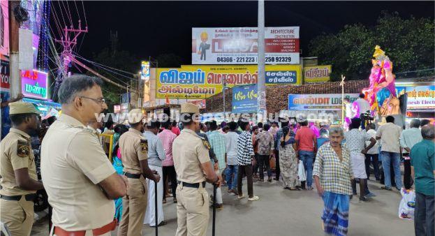 திருவாரூர் : திருவாரூர் மாவட்டம், திருவாரூர் உட்கோட்டம், திருவாரூர் நகர காவல் நிலைய எல்லைக்குட்பட்ட பகுதியில் நடைபெற்று வரும் விநாயகர் சிலை ஊர்வல பாதுகாப்பு பணியை திருவாரூர் மாவட்ட காவல் கண்காணிப்பாளர் திரு.S.ஜெயக்குமார், M.Sc, (Agri)., அவர்கள் (09.09.2024) நேரில் சென்று பார்வையிட்டு பாதுகாப்பு பணியில் ஈடுபட்டு வரும் அதிகாரிகள் மற்றும் காவல் ஆளிநர்களுக்கு அறிவுரைகள் வழங்கினார்கள். மேலும், விநாயகர் சிலையை கரைக்கக்கூடிய பகுதியில் மேற்கொள்ளப்பட்ட முன்னேற்பாடுகளை ஆய்வு செய்தார்கள்.