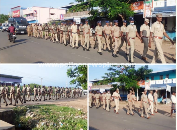 தஞ்சாவூர் : தஞ்சாவூர் மாவட்ட காவல் கண்காணிப்பாளர் திருமதி.ரவளி ப்ரியா கந்தபுனேனி. இ.கா.ப. அவர்கள் உத்தரவின்படி, சைபர் குற்றப்பிரிவு கூடுதல் காவல் கண்காணிப்பாளர் திரு.P.கென்னடி, மற்றும் பட்டுக்கோட்டை துணைக் காவல் கண்காணிப்பாளர் திருமதி.அனிதா கிரேசி, ஆகியோர் தலைமையில் பட்டுக்கோட்டை உட்கோட்டத்தில் எதிர்வரும் விநாயகர் சதுர்த்தி விழாவின் பாதுகாப்பிற்கான கொடி அணிவகுப்பு பேரணி மல்லிப்பட்டினம் மற்றும் பேராவூரணியில் நடைபெற்றது.