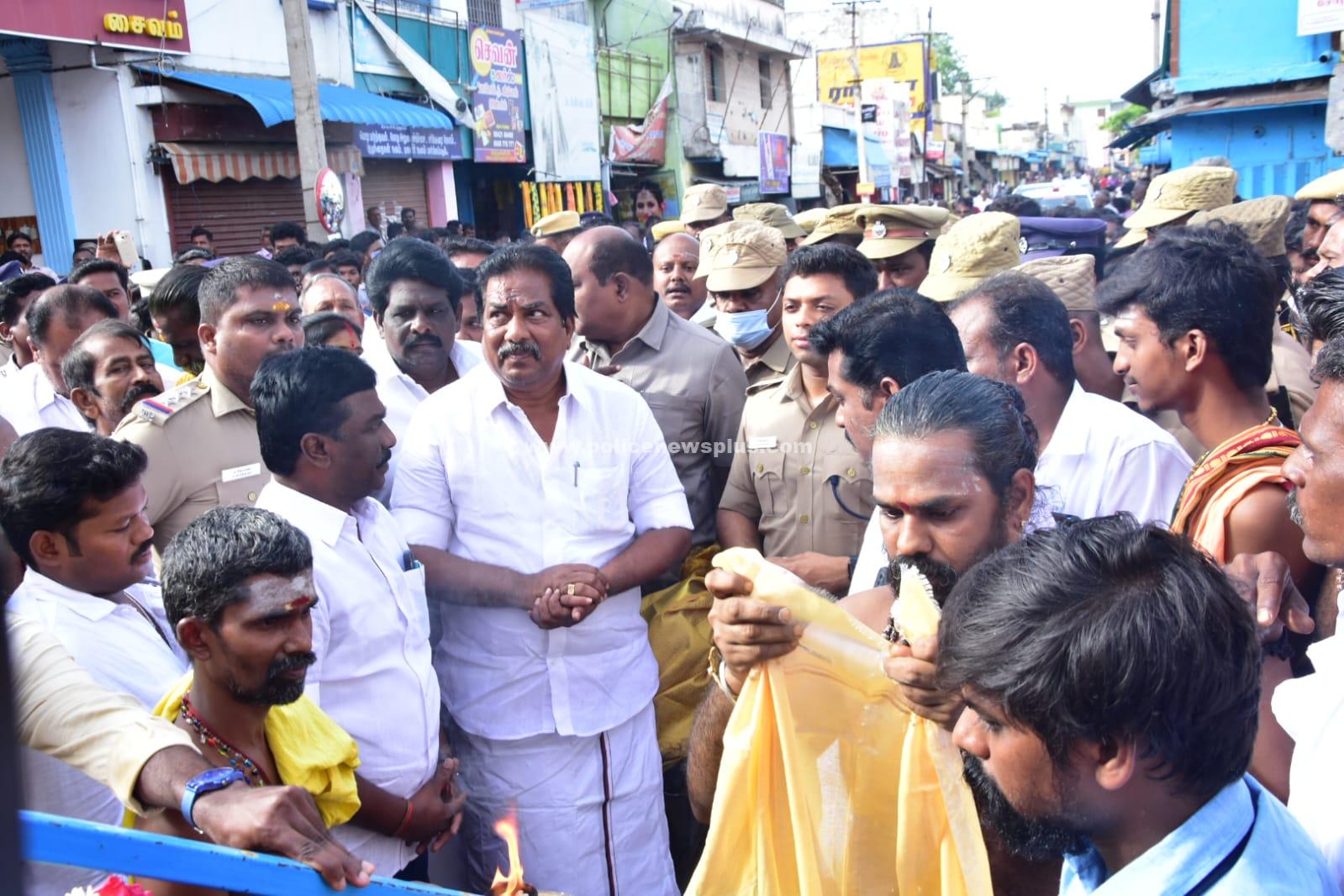 மதுரை : மதுரை மாவட்டம், சோழவந்தான் அருள்மிகு ஜெனகை மாரியம்மன் கோவில், வைகாசி திருவிழா கடந்த 6ஆம் தேதி கொடியேற்றத்துடன் தொடங்கி நடைபெற்று வருகிறது. கடந்த 14ஆம் தேதி பால்குடம் அக்னிச்சட்டி நிகழ்ச்சிகள் 15ஆம் தேதி பூக்குழி நிகழ்ச்சியும் நடைபெற்றது. முக்கிய நிகழ்வான , தேரோட்டம் காலை நடைபெற்றது. இந்நிகழ்ச்சியில், பத்திரப்பதிவு மற்றும் வணிகவரித் துறை அமைச்சர் மூர்த்தி தேரை வடம் பிடித்து தொடங்கி வைத்தார். சோழவந்தான் சட்டமன்ற உறுப்பினர் வெங்கடேசன், மதுரை மாவட்ட எஸ்.பி. திரு. சிவ பிரசாத், சமயநல்லூர் டி.எஸ்.பி திரு. பாலசுந்தரம் , சோழவந்தான் ஆய்வாளர் திரு. சிவபாலன், சோழவந்தான் பேரூராட்சித் தலைவர் திரு. ஜெயராமன் ,பேரூராட்சி செயல் அலுவலர் திரு. சுதர்சன், துணைத்தலைவர்லதா திரு. கண்ணன் பணி நியமன குழு திருமதி. ஈஸ்வரி ஸ்டாலின், தொழிலதிபர் திரு. அரிமா சங்கத் தலைவர் டாக்டர் திரு. மருதுபாண்டியன், திரு. மணி முத்தையா, பொதுக்குழு உறுப்பினர் திரு. ஸ்ரீதர், முன்னாள் பேரூராட்சி துணைத் தலைவர் திரு. அண்ணாதுரை, பேரூர் செயலாளர் திரு. முனியாண்டி, நிர்வாகிகள் வழக்கறிஞர் திரு. சத்யபிரகாஷ், சோழவந்தான் ஆர் .திரு. ஸ்டாலின், சிபிஆர் திரு. சரவணன், முள்ளிப்பள்ளம் ஊராட்சி மன்றத் துணைத்தலைவர் திரு. கேபிள் ராஜா, வழக்கறிஞர் திரு. முருகன், முன்னாள் பேரூராட்சி சேர்மன்திரு. ஐயப்பன், தொழிலாளர் முன்னேற்ற சங்க தலைவர் திரு. பாலு, மாணவரணி எஸ். ஆர் திரு. சரவணன், திரு. முத்துக்குமரன், திரு. ராஜா என்ற இருளப்பன், வர்த்தக சங்கம்ஜவஹர், பிடிஆர் பாண்டியன், ஜவுளி நிறுவனர் திரு. பி. எஸ். மணி, கவுன்சிலர் திரு. சிவா, சங்கங்கோட்டை சந்திரன் மற்றும் சரவணன் நகர இளைஞரணி முட்டை கடை காளி மாவட்ட பிரதிநிதி திரு. சுரேஷ் தகவல் தொழில் நுட்ப திரு, அணி பார்த்திபன் மற்றும் பேரூராட்சி கவுன்சிலர்கள் மற்றும் பொதுமக்கள் கலந்து கொண்டனர்.
