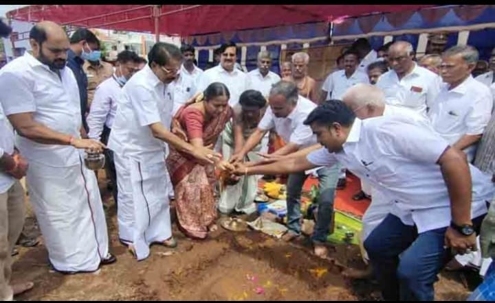 விருதுநகர் : விருதுநகர் மாவட்டம் அருப்புக்கோட்டை நெசவாளர் காலனி பகுதியில், நகர்புற மேம்பாட்டு திட்டத்தின் கீழ் புதிய நூலகம் கட்டப்பட உள்ளது. 1 கோடியே, 88 லட்சம் ரூபாய் திட்ட மதிப்பீட்டில் கட்டப்படும் நூலகத்திற்கு, வருவாய்த்துறை மற்றும் பேரிடர் மேலாண்மைத்துறை அமைச்சர் கே.கே.எஸ்.எஸ்.ஆர். ராமச்சந்திரன் தலைமையில் அடிக்கல் நாட்டும் நிகழ்ச்சி நடைபெற்றது. நிகழ்ச்சியில் அமைச்சர் ராமச்சந்திரன் பேசும்போது, அருப்புக்கோட்டை பகுதியைச் சேர்ந்த பள்ளி மற்றும் கல்லூரி மாணவர்களின் வசதிகளுக்காகவும், அரசு துறைகளின் தேர்வுகளுக்கு தயாராகும் தேர்வர்களின் பயன்பாட்டிற்காகவும் இந்தப்பகுதியில் நூலகம் மற்றும் அறிவுசார் மையம் கட்டப்படுகிறது. நூலக கட்டுமானப்பணிகள் விரைவுபடுத்தப்பட்டு, நூலகம் விரைவில் பொதுமக்கள் பயன்பாட்டிற்காக திறக்கப்படும் என்று கூறினார். நிகழ்ச்சியில் அருப்புக்கோட்டை நகர்மன்ற தலைவர் திருமதி.சுந்தரலட்சுமி, துணைத்தலைவர் பழனிச்சாமி, ஆணையாளர் திரு.அசோக்குமார், முன்னாள் நகர்மன்ற தலைவர் திரு.சிவப்பிரகாசம், உட்பட திமுக கட்சி நிர்வாகிகள் மற்றும் நகராட்சி அதிகாரிகள் பலர் கலந்து கொண்டனர்.