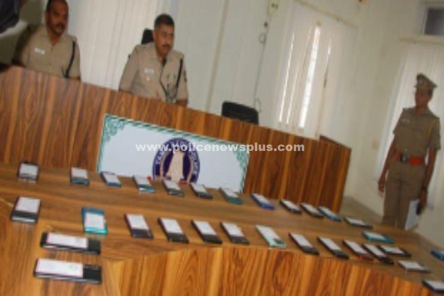 திருவாரூர் : திருவாரூர் மாவட்டத்தில் பொதுமக்களின் செல்போன் களவு போனது மற்றும் காணாமல் போனது தொடர்பாக 2021, 2022 மற்றும் 2023 ம் வருடத்தில், காவல் நிலையங்கள் மற்றும் சைபர் கிரைம் காவல் நிலையத்தில் பெறப்பட்ட புகார்கள் மீது விரைந்து உரிய நடவடிக்கை எடுக்க திருவாரூர் மாவட்ட காவல் கண்காணிப்பாளர் திரு.T.P.சுரேஷ் குமார் அவர்கள் உத்தரவிட்டதின் பேரில் மாவட்ட காவல் அலுவலகத்தில் இயங்கி வரும் சைபர் கிரைம் காவல் நிலையம் மூலமாக அதிரடி விசாரணை மேற்கொள்ளப்பட்டு, ரூ.13,75,000/- மதிப்பிலான 83 ஆண்டிராய்டு வகை செல்போன்கள் மீட்கப்பட்டது. மீட்கப்பட்ட செல்போன் உரிமையாளர்களை மாவட்ட காவல் அலுவலகத்திற்கு இன்று 08.03.2023 நேரில் அழைத்து மாவட்ட காவல் கண்காணிப்பாளர் திரு.T.P.சுரேஷ்குமார் அவர்கள் உரிமையாளர்களிடம் செல்போன்களை ஒப்படைத்தார்கள். மேலும் சிறப்பாக பணியாற்றிய திருவாரூர் மாவட்ட சைபர் கிரைம் காவல் அலுவலர்களை மாவட்ட காவல் கண்காணிப்பாளர் அவர்கள் பாராட்டி வெகுமதி வழங்கினார்கள்.