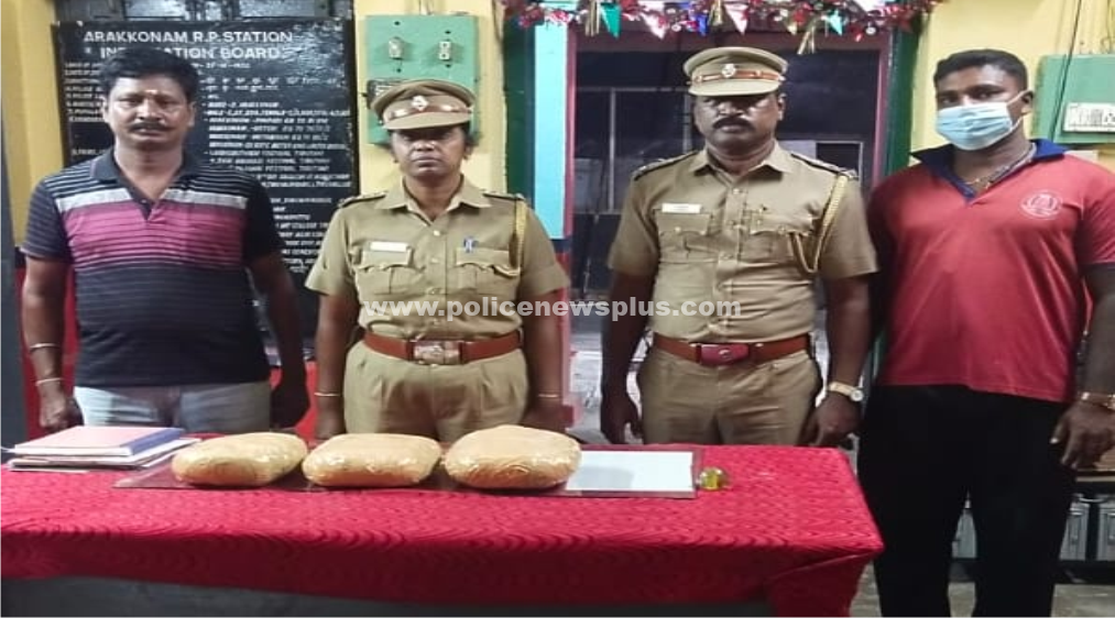 இதைத்தொடர்ந்து அரக்கோணம் ரயில்வே போலீஸ் இன்ஸ்பெக்டர் திருமதி.விஜயலட்சுமி சப்-இன்ஸ்பெக்டர் திரு.ஆனந்தன், திரு. ராமகிருஷ்ணன், ஏட்டுகள் நந்தகுமார் மற்றும் பாபு ஆகியோர் நேற்று அதிகாலை அரக்கோணம் வழியாக செல்லும் ரயில்களில் ரகசிய கண்காணிப்பு பணியில் ஈடுபட்டிருந்தனர்.