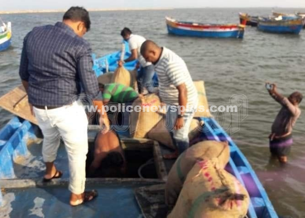 10லட்சம் ரூபாய் மதிப்பிலான ஏலக்காய் மூடைகள் மற்றும் கடத்தலுக்கு பயன்படுத்தப்பட்ட இரண்டு படகுகளை கியூ பிரிவு போலீசார் பறிமுதல் செய்தனர்.