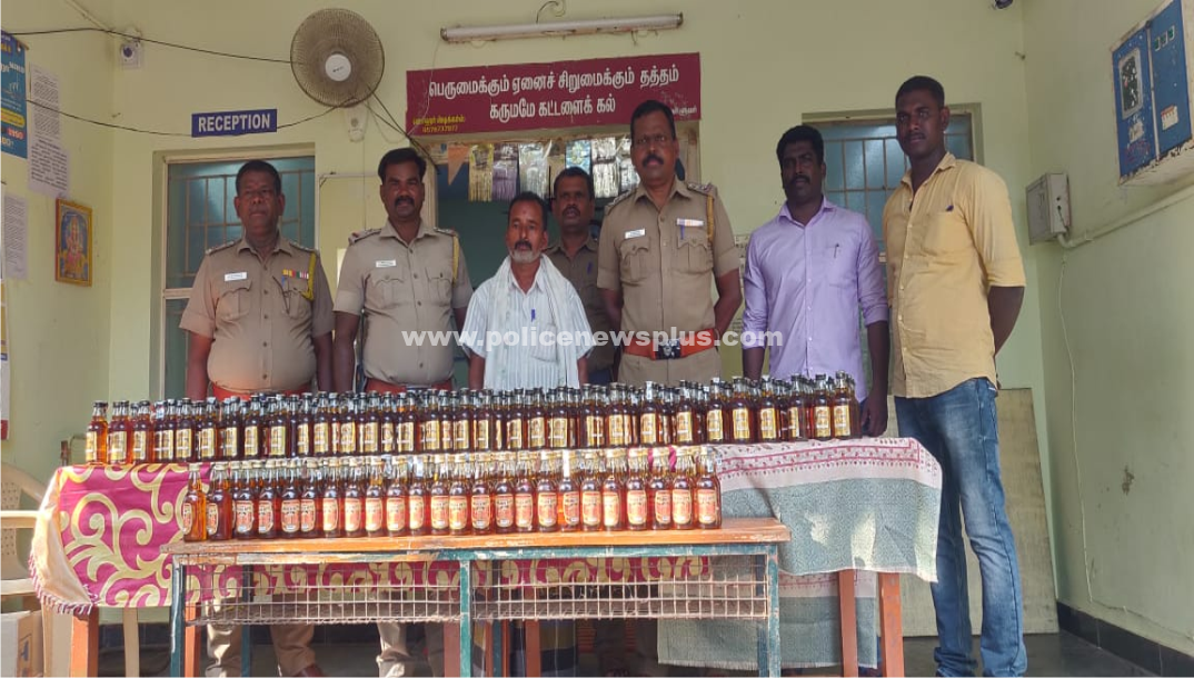 இராமநாதபுரம்: இராமநாதபுரம் மாவட்டம் தொண்டி காவல் நிலைய எல்லைக்குட்பட்ட சோழிய கொடியில் ஆய்வாளர் திரு.முருகேசன் தலைமையிலான காவலர்கள் வாகன சோதனையில் ஈடுபட்ட பொழுது காளிமுத்து 51, என்பவரிடமிருந்து 86,400 ml அளவிலான மது பாட்டில்கள் மற்றும் 3110/– ரூபாய் ரொக்கமும் பறிமுதல் செய்யப்பட்டது முதற்கட்ட விசாரணையில் மது பாட்டில்கள் ஆதியூரை சேர்ந்த பிரபாகரன் என்பவருக்காக வாங்கி வரப்பட்டது என்பதும் தெரியவந்தது இதனிடையே குற்றவாளி பிரபாகரன் ஒப்புதல் வாக்குமூலம் அளிக்காமல் தலைமறைவு.