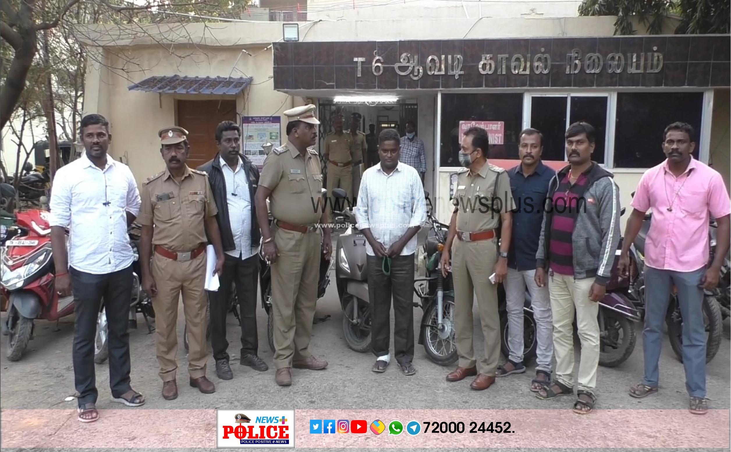 திருவள்ளூர் : திருவள்ளூர் மாவட்டம் ஆவடி சுற்றுவட்டார பகுதிகளில் வீடுகள் தனியார் இனிப்பகம் முன் முன்பு நிறுத்தி வைக்கப்பட்டிருந்த இருசக்கர வாகனங்கள் தொடர்ந்து திருடப்பட்ட நிலையில் கடந்த 15ஆம் தேதி ஆவடி பேருந்து நிலையம் எதிரே தனியார் இனிப்பகம் வாசலில் இருசக்கர வாகனம் திருடப்பட்டது.