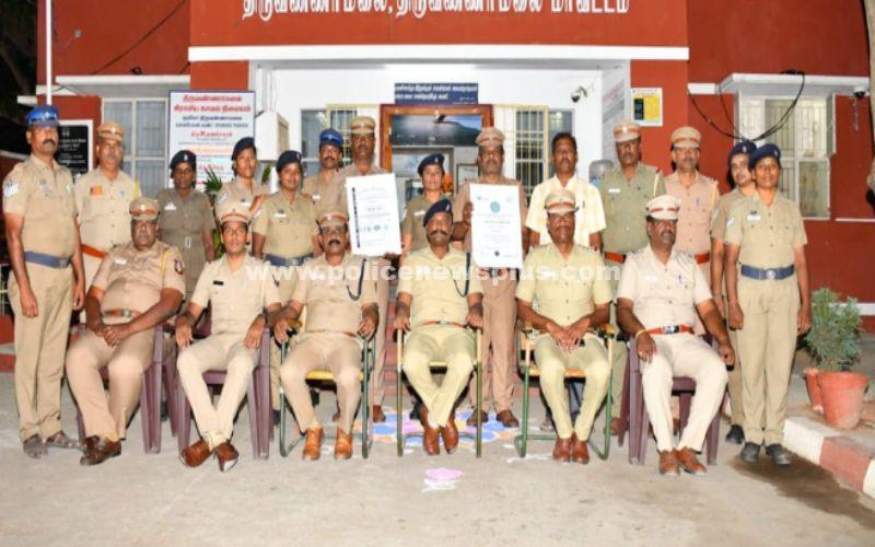 திருவண்ணாமலை : திருவண்ணாமலை மாவட்ட காவல் கண்காணிப்பாளர் மரு.கி.கார்த்திகேயன்,இ.கா.ப., அவர்களின் அறிவுறுத்தலின்படி, (14.04.2023) திருவண்ணாமலை மாவட்டத்தில் உள்ள திருவண்ணாமலை கிராமியம், தானிப்பாடி, போளூர் மற்றும் ஆரணி நகரம் ஆகிய 4 காவல் நிலையங்களுக்கு ISO தரச்சான்றானது வழங்கப்பட்டுள்ளது. இத்தரச்சான்றுகளை அந்தந்த காவல் நிலைய ஆய்வாளர்களிடம் மதிப்பீட்டாளர்கள் திரு.B.கார்த்திகேயன் மற்றும் திருமதி.K.வனிதா ஆகியோர் வழங்கினர்