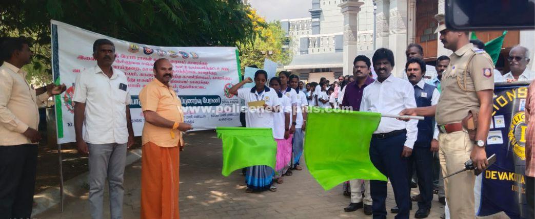 இவ்விழிப்புணர்வு பேரணியை அழகப்பா பல்கலைக்கழக மேனாள் துணை வேந்தர் பேராசிரியர் S. சுப்பையா அவர்கள், காரைக்குடி வட்டாட்சியர் A. ராஜா அவர்கள், காரைக்குடி காவல்துறை துணைக் கண்காணிப்பாளர் T.பார்த்திபன் அவர்கள், காரைக்குடி கோட்ட ஆயத்தீர்வை அலுவலர் S. மூர்த்தி அவர்கள், காவல் ஆய்வாளர் D.செல்வகுமார், காவல் ஆய்வாளர் A.சதீஸ்குமார், அனைத்து மகளிர் காவல்நிலைய சார்பு ஆய்வாளர் மாலா மற்றும் காரைக்குடி லயன்ஸ் சங்க மண்டலத்தலைவர் MJF. லயன்.R. சித்தார்த்தன் போன்றோர்கள் கொடி அசைத்து கண்ணதாசன் மணிமண்டபத்தில் இருந்து துவக்கி வைத்தனர்.