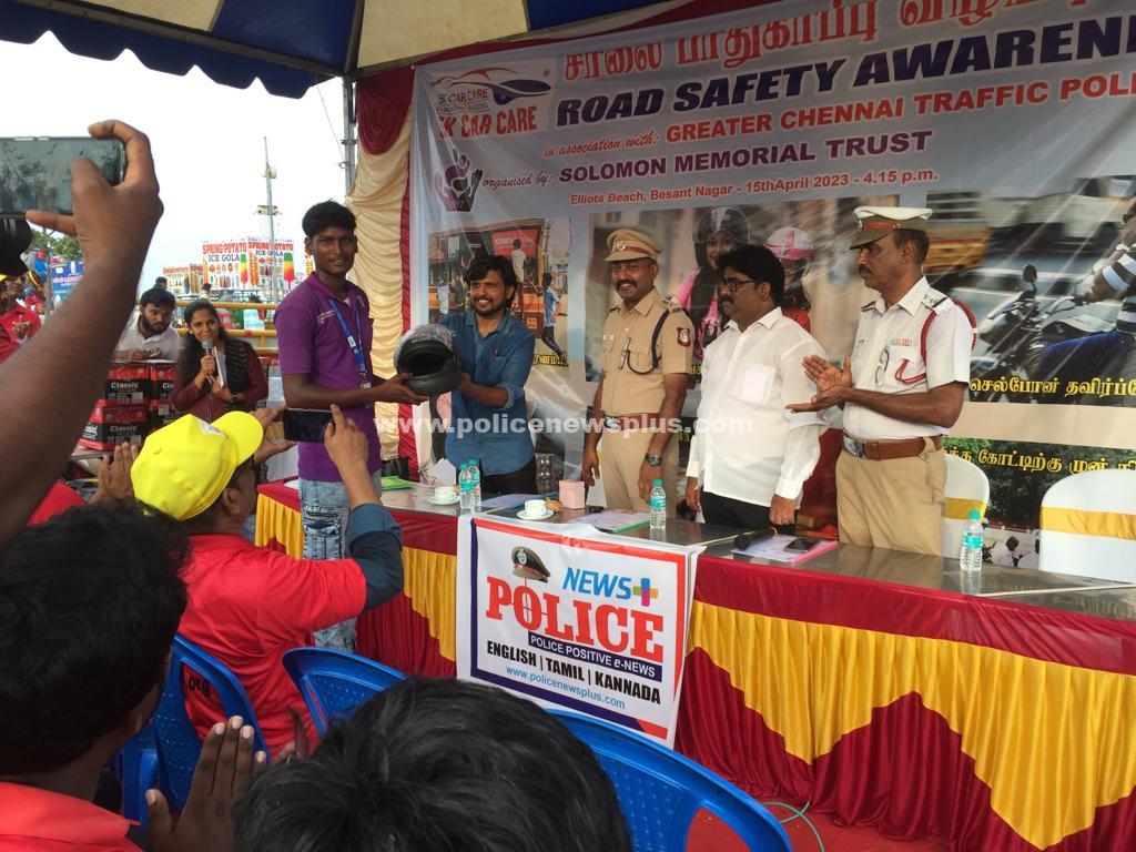 சென்னை பெசன்ட் நகர் எல்லியாட்ஸ் கடற்கரை சாலையில் சாலை பாதுகாப்பு விழிப்புணர்வு நிகழ்ச்சி நேற்று முன்தினம்(16.04.2023) நடைபெற்றது. பெருநகர சென்னை போக்குவரத்து காவல்துறையுடன் இணைந்து போலீஸ் நியூஸ் பிளஸ்,சாலமோன் நினைவு அறக்கட்டளை மற்றும் 5K CAR CARE நிறுவனம் நடத்திய இந்நிகழ்ச்சியில் வியாசர்பாடி டான்பாஸ்கோ மாணவ, மாணவியர் மற்றும் குத்துச்சண்டை வீரர், வீராங்கனைகள் சாலை பாதுகாப்பு குறித்த பதாகைகளை ஏந்தி அணிவகுத்துச் சென்றனர்.